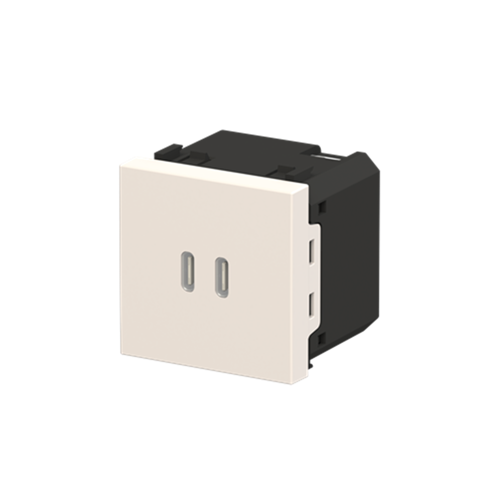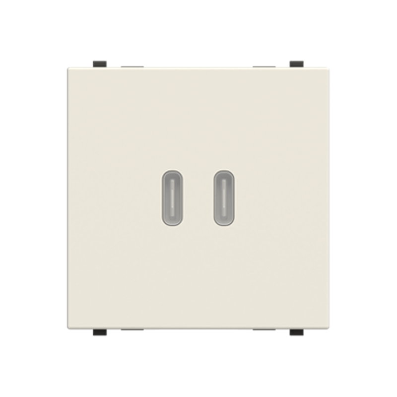 Este cargador USB ocupa 2 módulos dentro de una caja de mecanismos y está diseñado exclusivamente para colocar en una instalación de Niessen Zenit.
