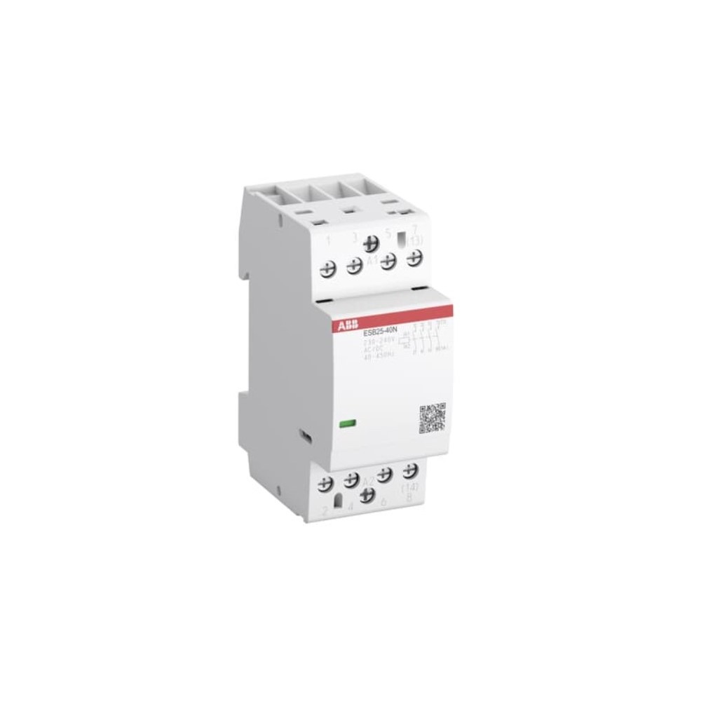 Los contactores de instalación ESB25..N de ABB se utilizan para controlar cargas monofásicas y trifásicas de hasta 25 A y pueden funcionar con CA o CC.