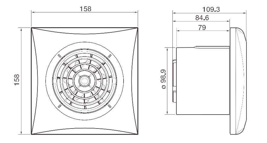 Dimensiones del extractor Silent-100 CZ: