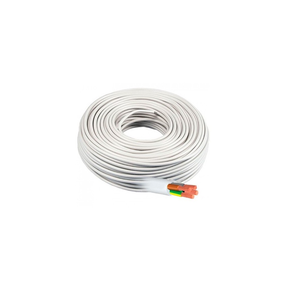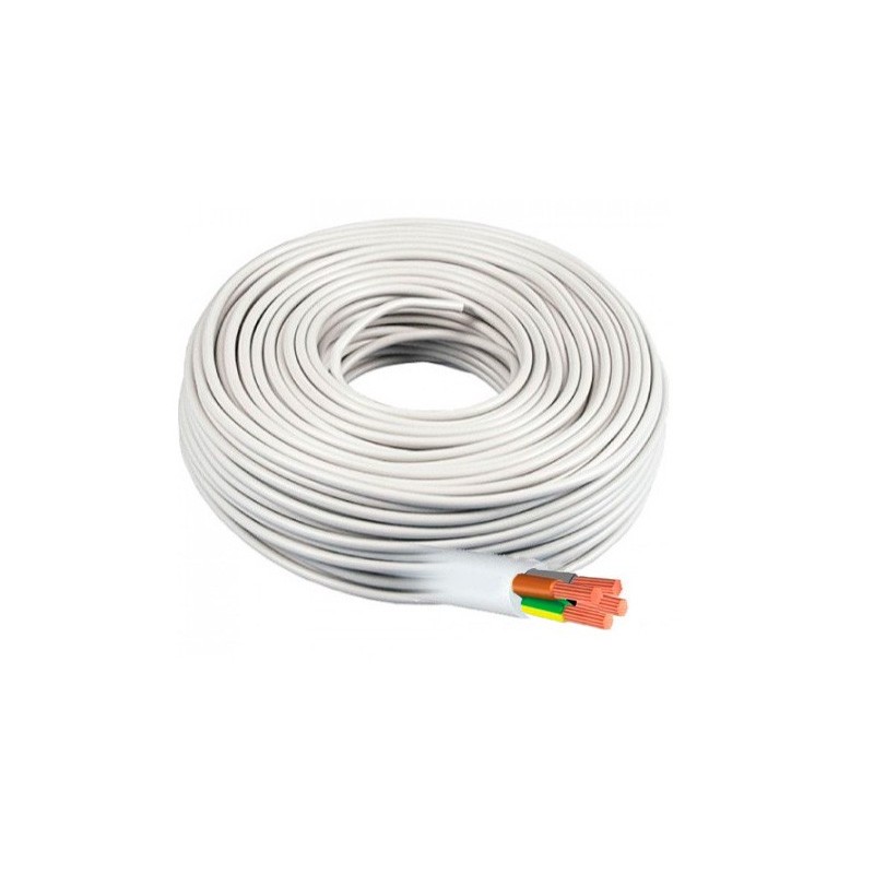 Una manguera eléctrica H05VV-F es un conductor eléctrico recubierto con un material aislante que protege la corriente eléctrica que circula a través de él. Esta manguera, de color negro y flexible, está compuesta por cuatros conductores eléctricos 3 fases activas (marrón, negro y gris) + Tierra (amarillo-verde) (4G1 mm² de sección eléctrica) de cobre recubiertos con un aislante de PVC de color blanco, lo que le confiere flexibilidad y resistencia.