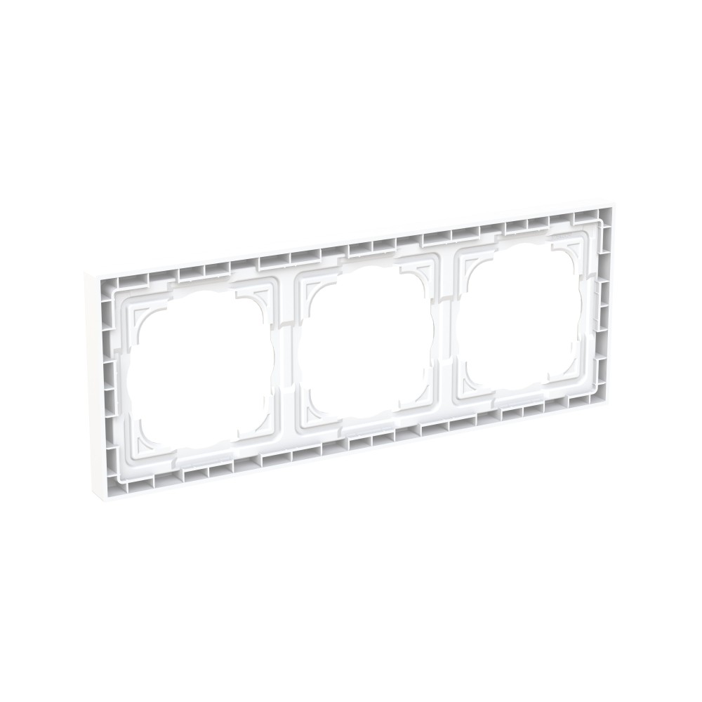 Este modelo de marco corresponde a una placa de 3 elementos o 6 módulos, lo que significa que puede albergar tres mecanismos completos. Está disponible en varios acabados (Blanco Mate, Blanco Brillo y Negro Mate), lo que permite combinarlo fácilmente con diferentes estilos de decoración, desde los más minimalistas hasta los más modernos.