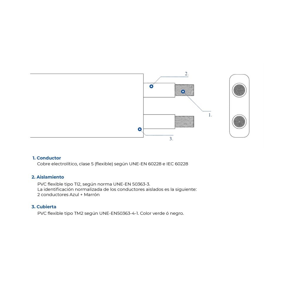 Cumple con las normas UNE-EN 60332-1 e IEC 60332-1, lo que significa que no propaga la llama. En caso de incendio, este cable no contribuirá a la propagación del fuego, mejorando la seguridad de las instalaciones donde se usa. El conductor del cable puede operar a una temperatura máxima de 70ºC, asegurando un rendimiento fiable incluso en condiciones de uso intensivo.