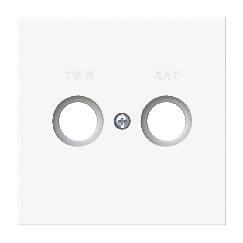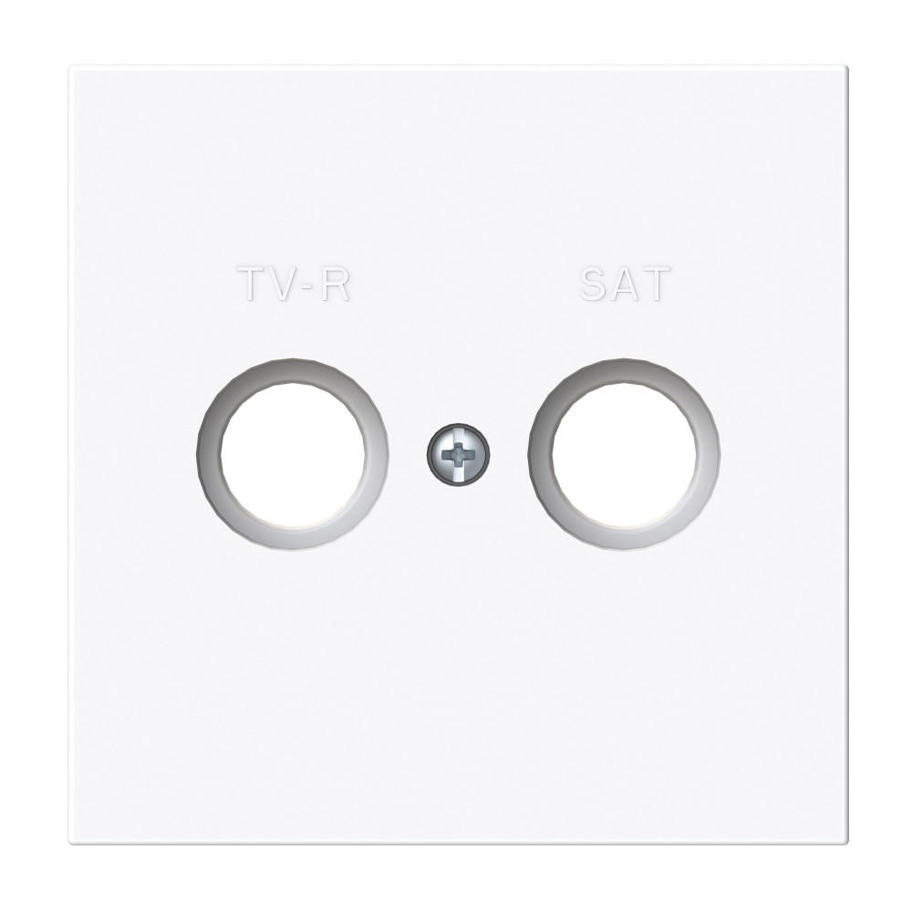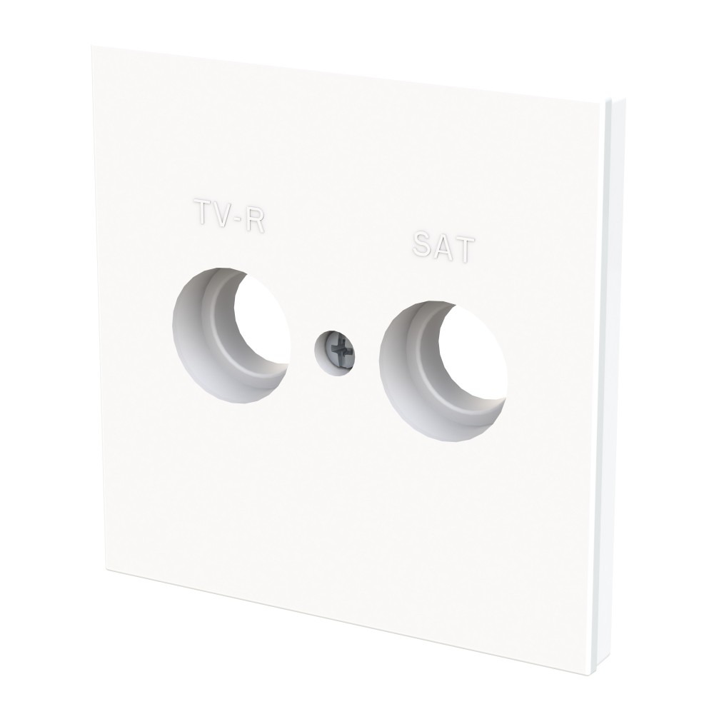 Esta tapa ofrece una solución práctica y elegante para puntos de conexión multimedia, permitiendo conectar cables coaxiales sin comprometer la estética del espacio. Su estructura facilita el acceso a las tres tomas (TV, R y SAT), garantizando un montaje limpio y profesional.