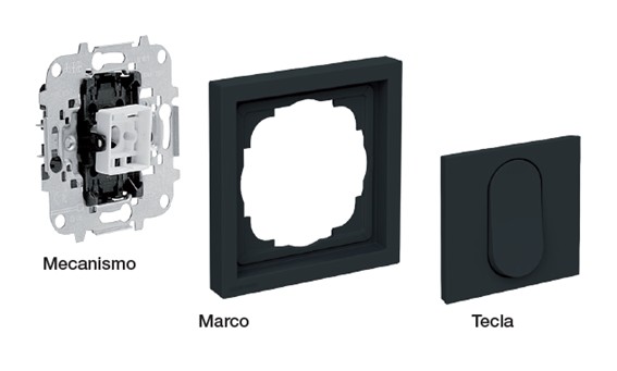 La instalación es muy sencilla: primero se elige el mecanismo según la función eléctrica que se necesite (por ejemplo, interruptor simple o doble, conmutador, enchufe, pulsador, etc.). Después, se selecciona la tecla o tapa correspondiente, y finalmente se añade el marco embellecedor.
